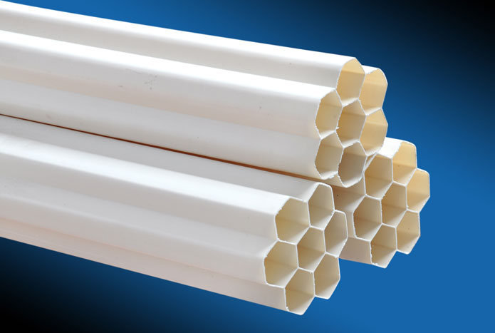 PVC生產線3條,生產品種為PVC電力管、七孔蜂窩管;